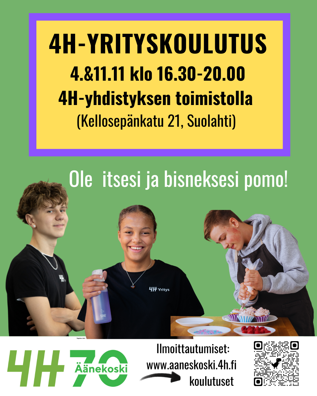4H-yrityskoulutus 4. & 11.11. klo 16.30-20.00 yhdistyksen toimistolla