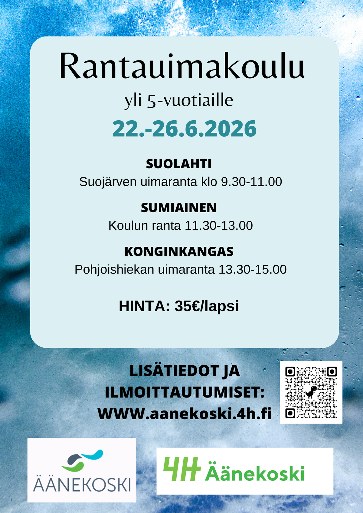 Uimakouluja 4H:n kanssa yhteistyössä järjestämässä Äänekosken kaupunki.