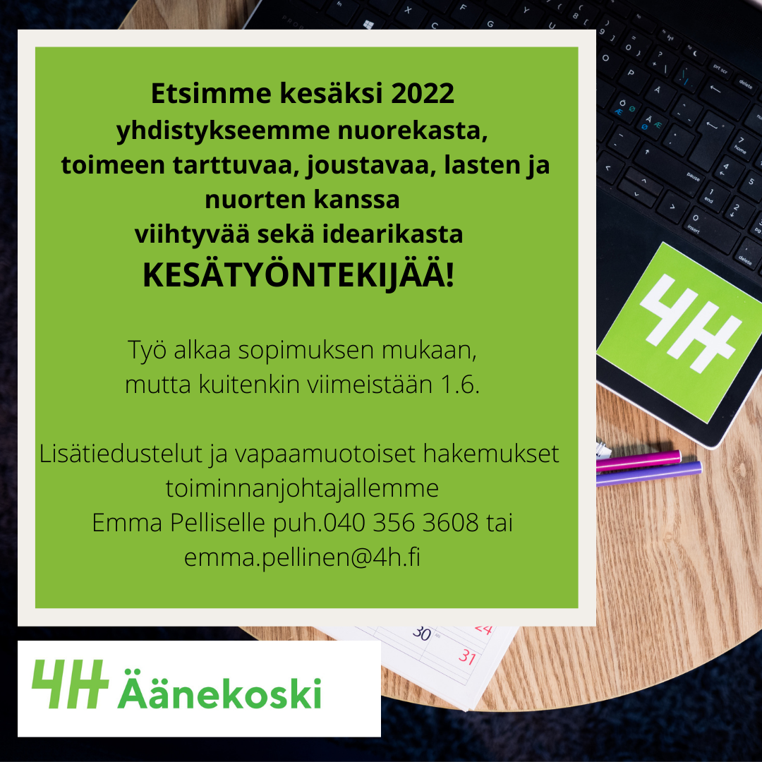 Haluaisitko viettää ensi kesän tehden töitä Äänekosken lasten- ja nuorten hyväksi? Etsimme työparia toiminnanjohtajallemme.