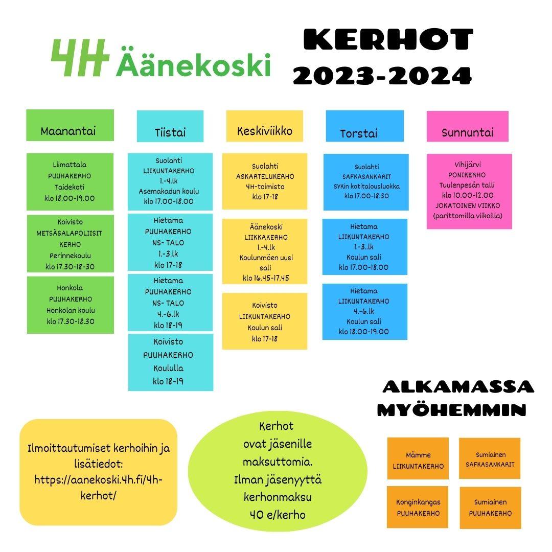 Kerhoista voit tiedustella myös toiminnanohjaajaltamme Miljalta/ 040 5665100 tai milja.paakkarinen@4h.fi