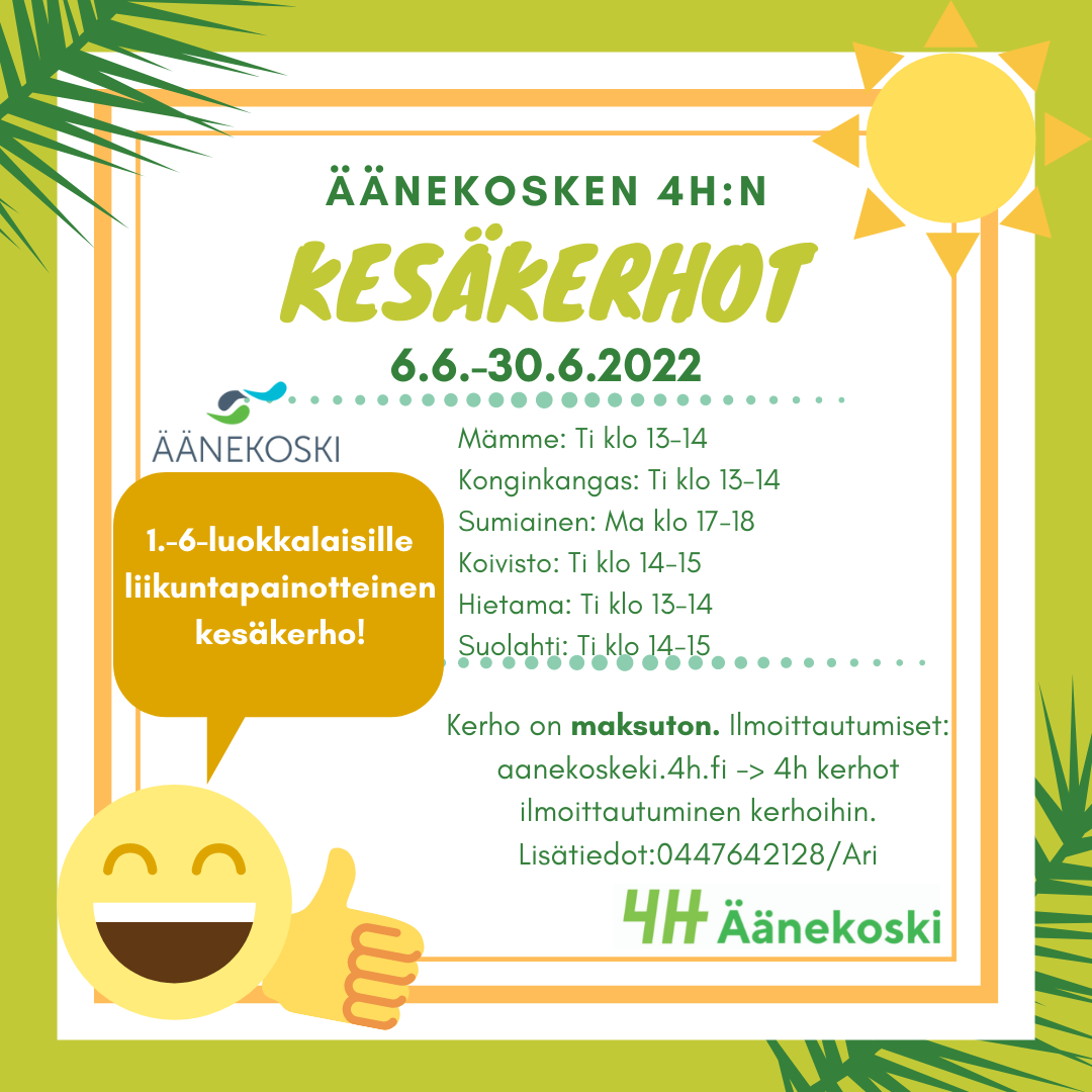 Ilmoittautumiset: https://aanekoski.4h.fi/4h-kerhot/ilmoittautuminen-kerhokaudelle-2020/